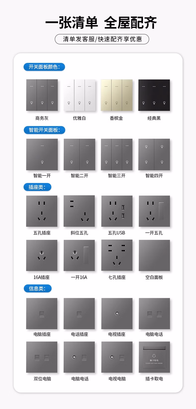 米家全屋智能开关支持小爱同学控制语音面板双控单零火已接入米家APP 定制[清单][报价单](勿拍)同款插座