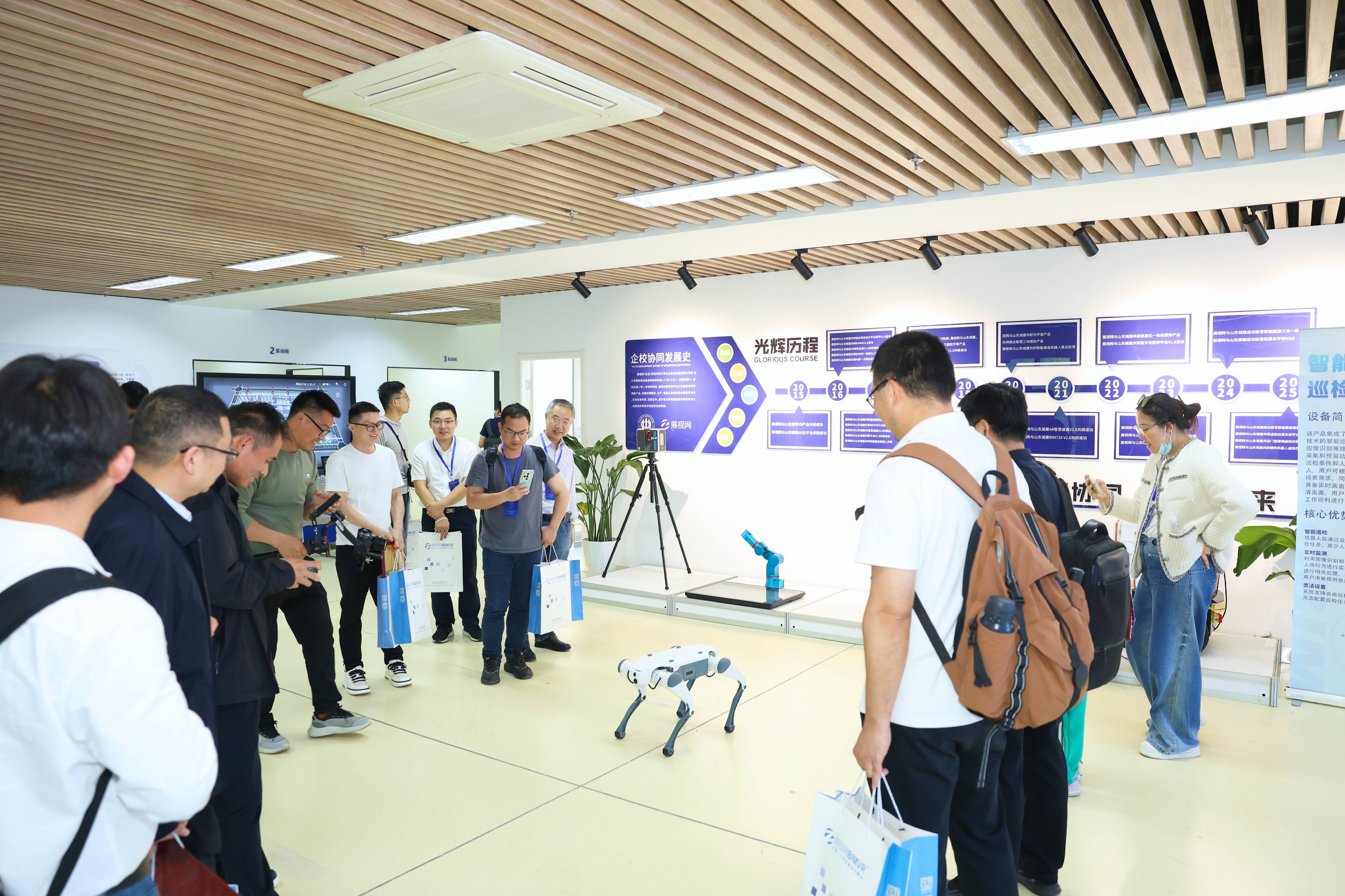 会后,与会领导、嘉宾实地参观山东省智能建造新技术研发中心、虚拟仿真实训中心、创艺工坊,近距离感受智能建造与职业教育融合的丰硕成果。