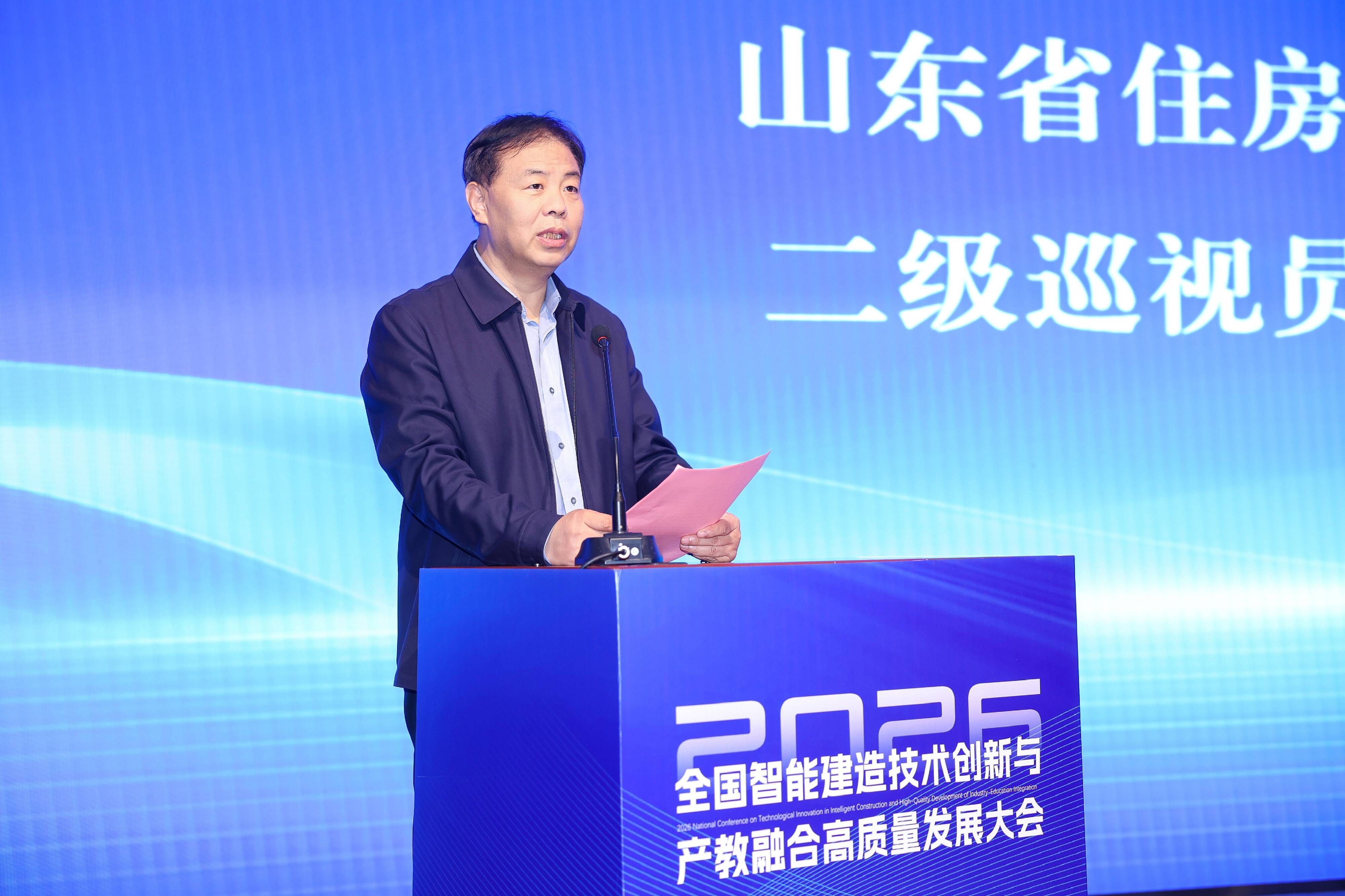 山东城市建设职业学院党委副书记、院长张国强在致辞中指出,2026年是智能建造全面推广元年,发展智能建造是培育建筑业新质生产力的核心引擎,举办本次大会是响应国家战略、服务行业转型的重要举措。他强调,学校立足建筑类高职院校办学定位,紧扣产教融合、科教融汇主线,主动对接产业变革重构育人体系,深化校企行协同育人,坚持以党建引领产教融合发展,着力培养适应智能建造需求的高素质技术技能人才。他表示,本次大会旨在集众智、破难题、探新路,答好智能建造人才培养时代课题,希望以大会为契机,深化各方交流合作,携手培育更多能工巧匠、大国工匠,共同推动建筑业高质量发展。
